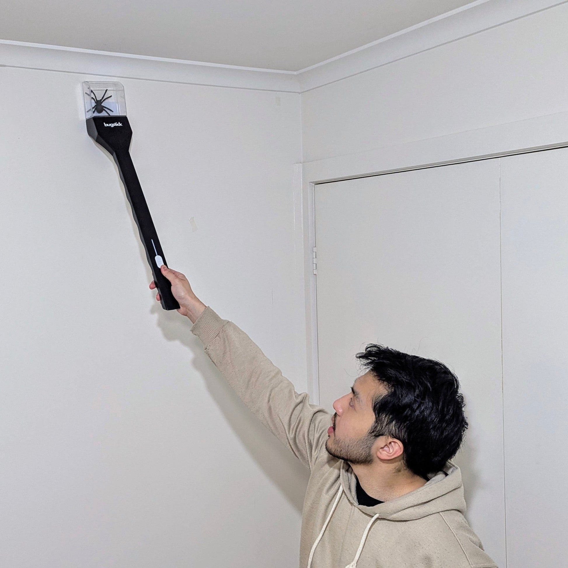 Bugstick works seamlessly on most surfaces, including floors, windows, and outdoor environments. Its flexible tip ensures easy maneuvering and safe handling on any surface.